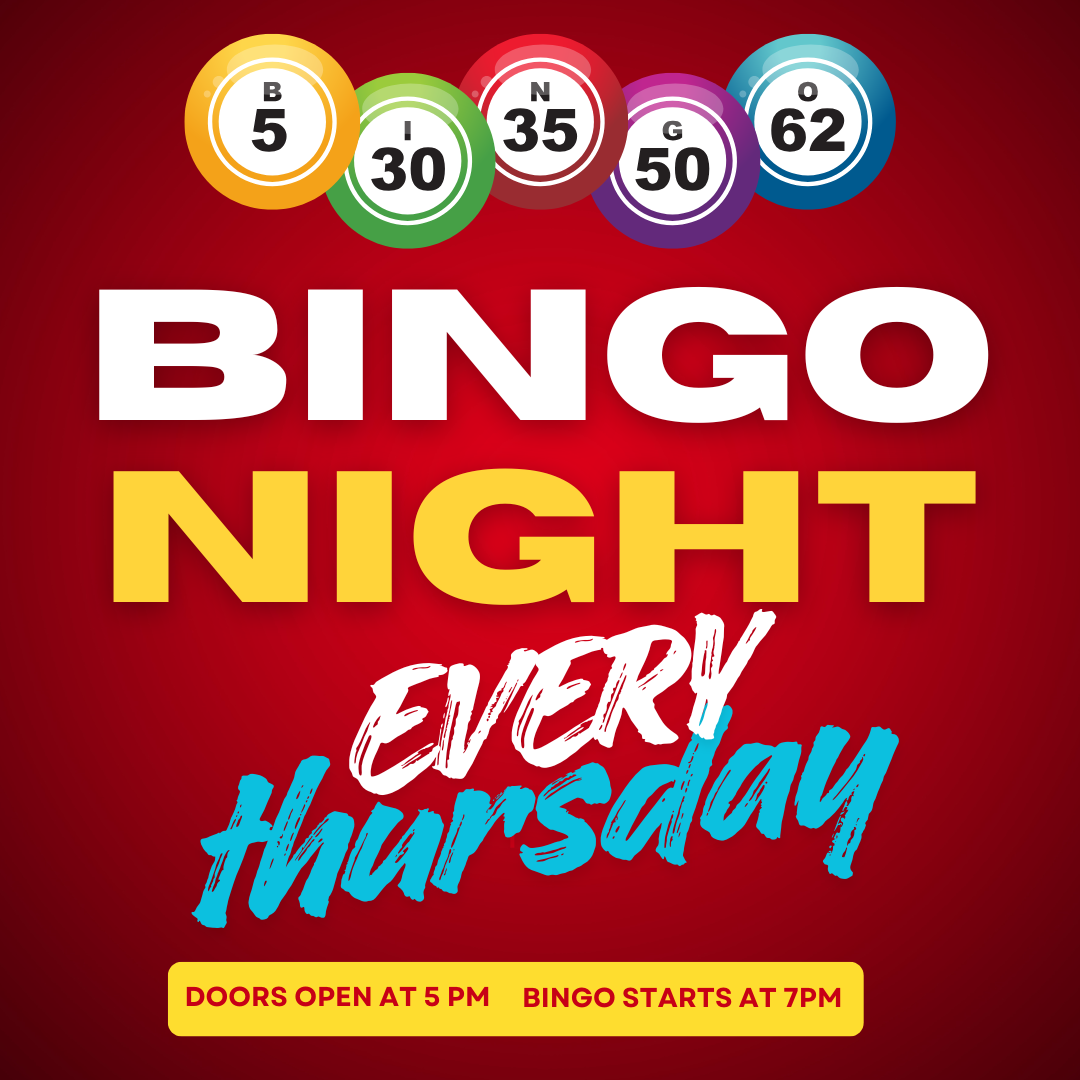 Every Thursday! Played in our North Niagara Hall. Food and Beverages available. Doors open at 5:00pm, Bingo starts at 7:00pm.